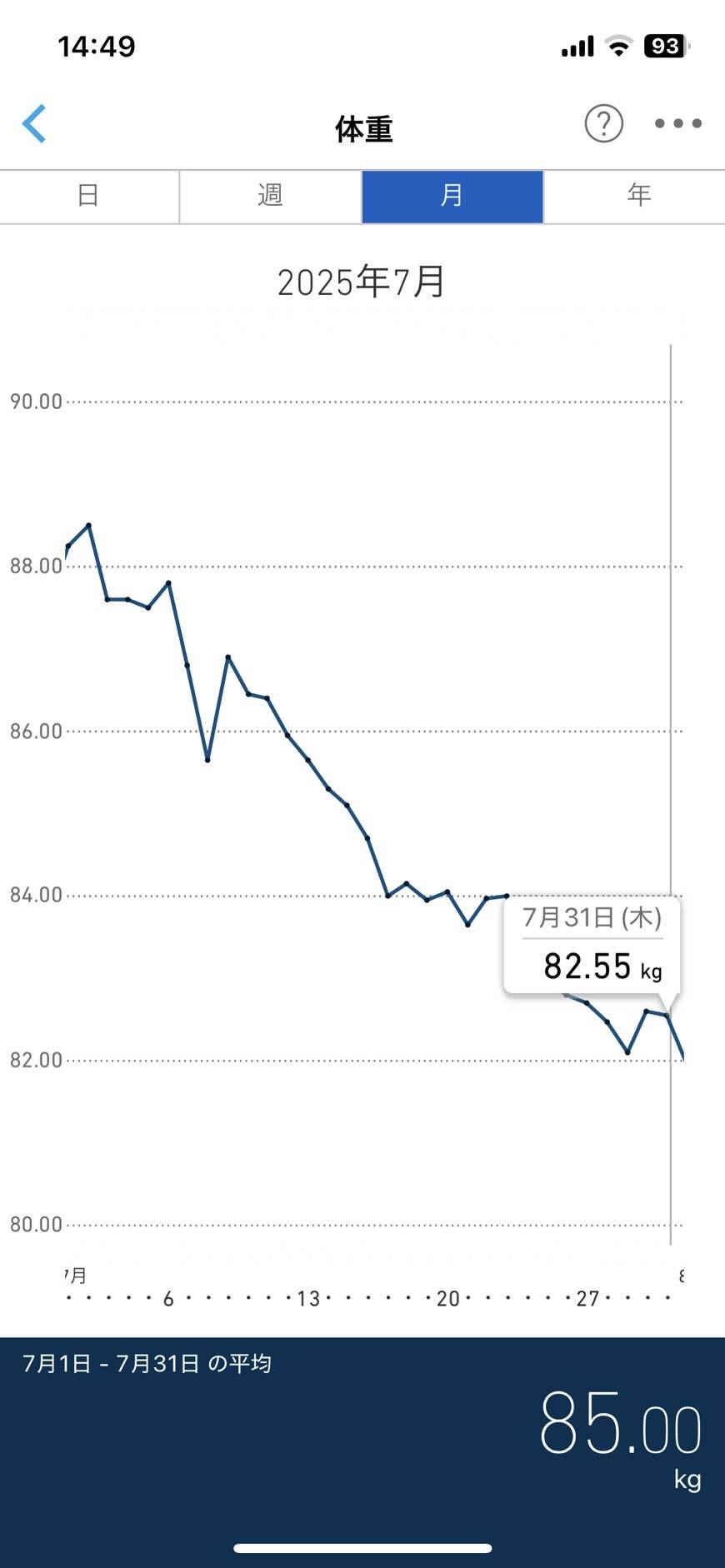 7月3日:87.60㎏→7月31日:82.55㎏(‐5.05㎏)